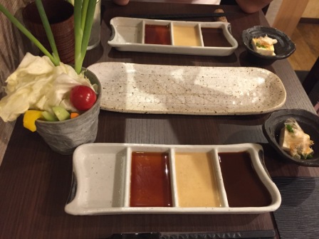 一口サイズのお通し(豆腐)と野菜がついているだけ。