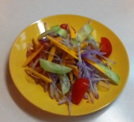 紫大根、コリンキー、入山きゅうり、トマトでサラダ
