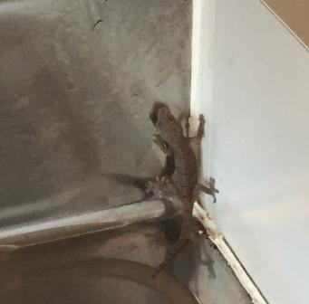 雨戸にくっついていたヤモリが飛んで入ってきた!