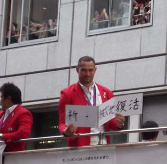 レスリングの室伏選手です。 やっぱり大きい! 写真でみると、ビルの2階もすごいことになっていました。