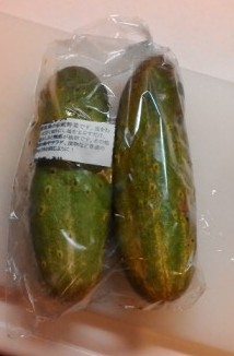 黒いイボがあり、皮はむいて塩もみして食べるのだそうです。100円