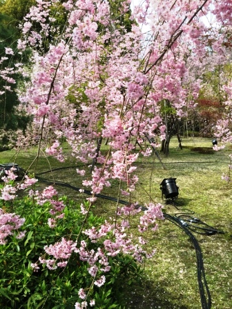 平安神宮のしだれ桜は、なんとか最後の桜が残っていました。