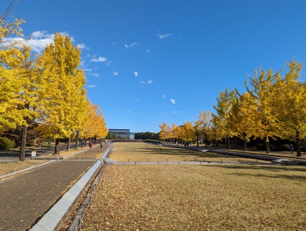 以前ちょっとだけイチョウ並木見に行ったんだけど、お天気もいいからおにぎりを作ってお茶も持って行ってみました