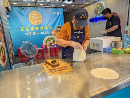 パクチー、アイス、黄な粉が入ったクレープみたいなの